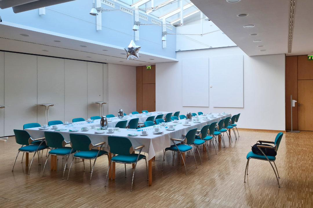 Saalmiete inkl. Reinigung (Besenrein), Bestuhlung und Technik.
